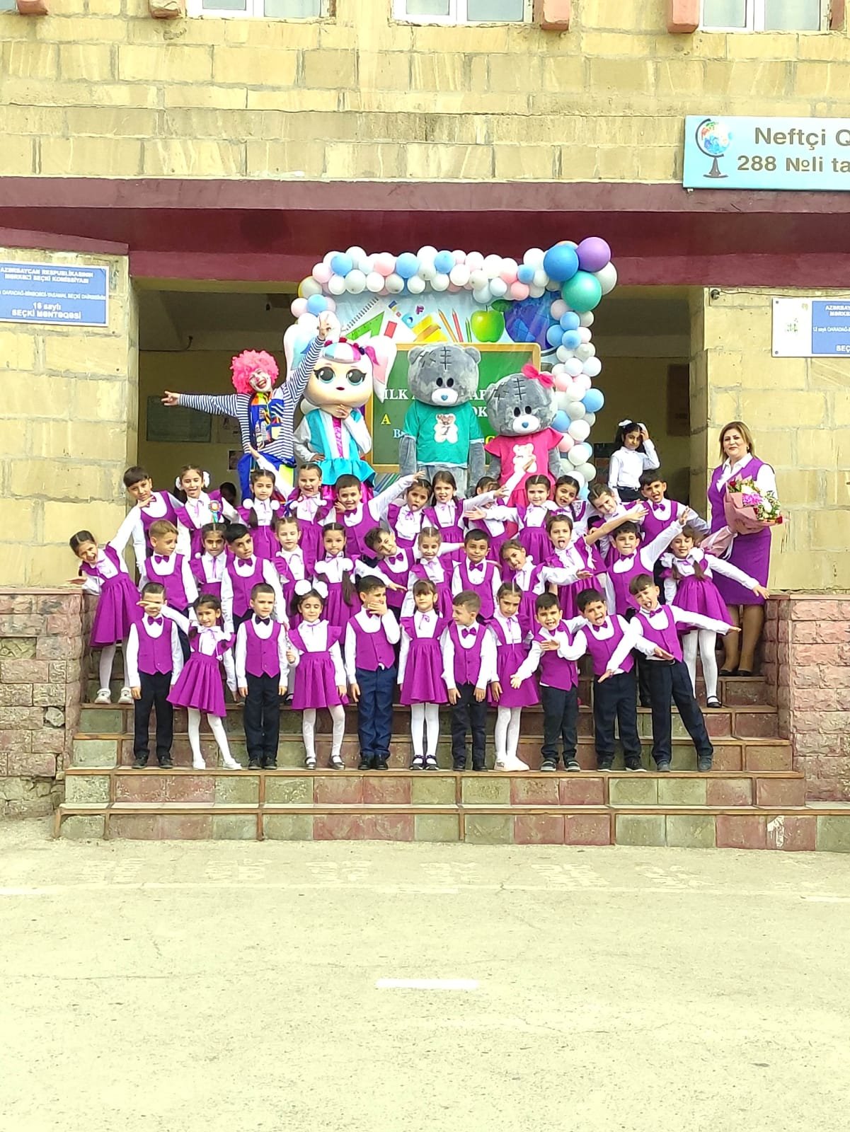 Bu gün də məktəbin drektoru Taleh Quliyev və müəllim kollektivi ilk dərs günü münasibətilə məktəbliləri təbrik etdilər.
