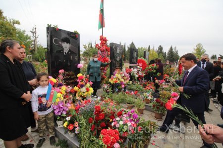 Daha sonra rayon rəhbəri və qonaqlar igid Vətən oğullarının ata ocağına gələrək torpaq uğrunda canından keçən şəhidlərimizə bir daha Allahdan rəhmət, ailələrinə səbir diləyib, əziz xatirələrini ehtiramla yad ediblər.