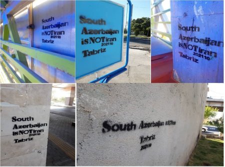 Bizim.Media "Azad İran" Teleqram kanalına istinadən xəbər verir ki, Təbrizin ictimai yerlərində və küçələrində ingilis dilində həkk olunmuş qrafiti və divar yazılarında “South Azarbaijan İs NOT İran. Tabriz 2021.10”, "Güney Azərbaycan İran deyil" sözləri yazılıb.