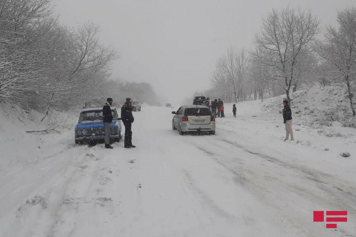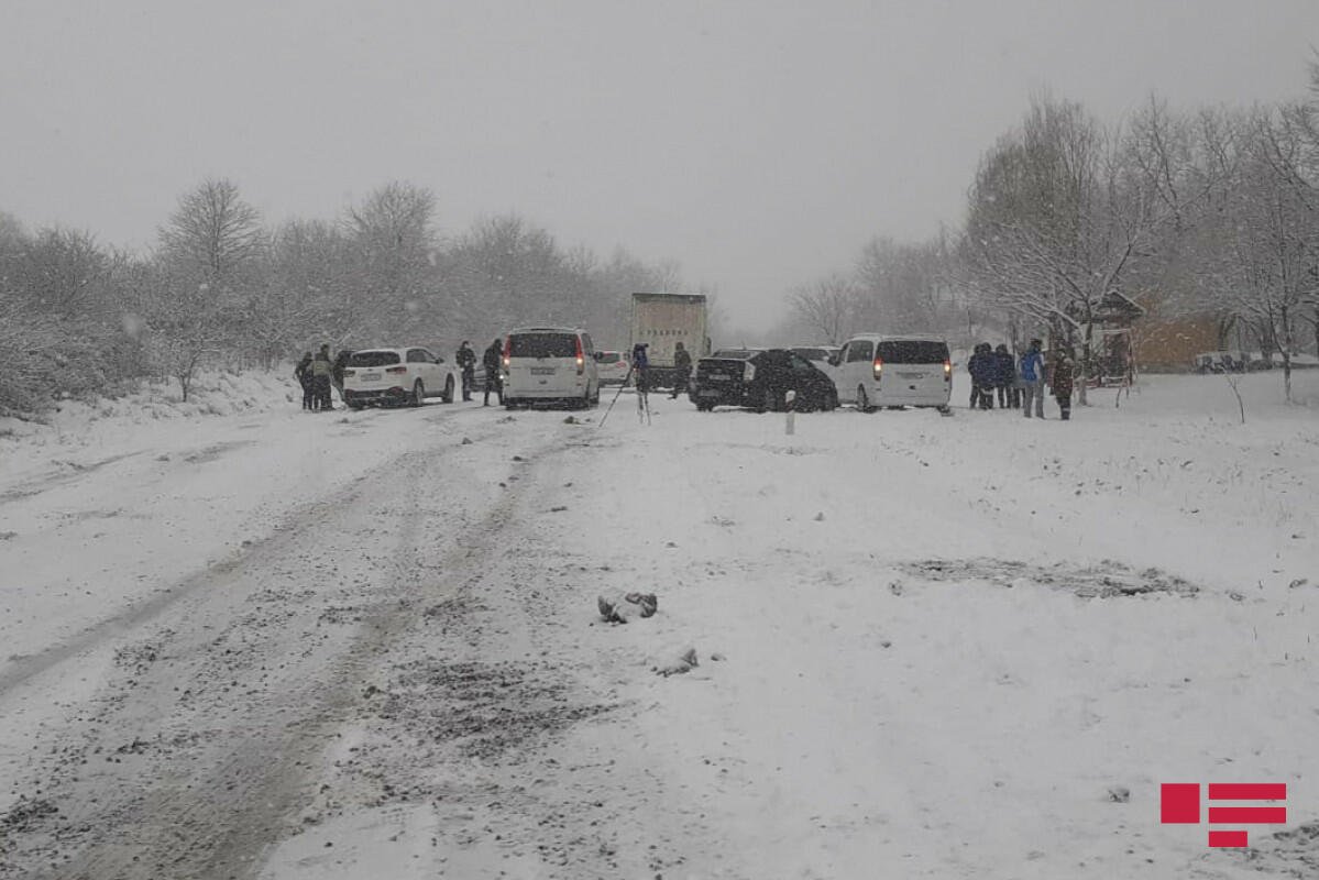 Bu ərazilərə yağan güclü qar, həmçinin duman və buz səbəbindən 10-a yaxın nəqliyyat vasitəsi sürüşərək bir-biri ilə toqquşub, yoldan çıxaraq aşıb, ağaca çırpılıb. Onlarla avtomobil hərəkət edə bilmədiyi üçün yolda qalıb, sürücülər və sərnişinlər yolların təmizlənməsini gözləyirlər. Şamaxı şəhəri ərazisində "NİVA" və "Mercedes Vita" markalı avtomobillərin toqquşması nəticəsində iki nəfər xəsarət alıb. Yaralılar Şamaxı rayon Mərkəzi Xəstəxanasına aparılıb. Hazırda yolların qardan təmizlənməsi işləri görülsə də, qar yağmaqda davam edir, nəqliyyatın hərəkəti yenidən çətinləşir.