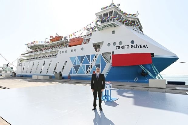 İlham Əliyev “Zərifə Əliyeva” gəmi-bərəsinin istismara verilməsi mərasimində iştirak edib - YENİLƏNİB + FOTO